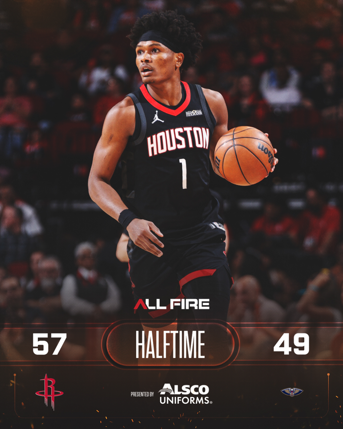 火箭队的杜兰特得到32分、6个篮板和5次助攻,汤普森得到23分、12个篮板和8次助攻,谢泼德得到18分和5个篮板,史密斯得到16分和5个篮板。鹈鹕队的穆雷得到35分、7个篮板和4次助攻,锡安得到21分和5个篮板,墨菲得到14分、5个篮板和7次助攻,费尔斯得到9分。