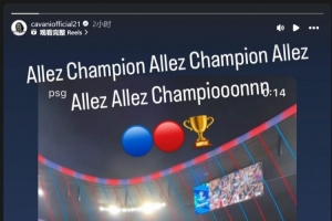 前巴黎圣日耳曼球员卡瓦尼,在赛后更新社媒,贴出巴黎今天夺冠后庆祝的视频,并写道:“加油,冠军!加油,巴黎圣日耳曼!!”